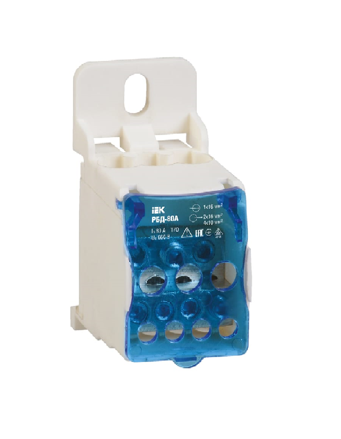Распределительные блоки РБД IEK применяются в качестве надежных клеммных зажимов при создании упорядоченных систем распределения и оборудовании главной заземляющей шины в распределительных шкафах. Распределительные блоки РБД применяются в сетях напряжением до 1000 В частотой 50 Гц, при температуре окружающего воздуха от минус 40 до плюс 70С. Устанавливаются на DIN-рейку или на монтажную панель в силовых шкафах и любых распределительных щитах. Блок РБД IEK изготовлен из луженой меди, его корпус из пластика, который не поддерживает горение и обладает отличными электроизоляционными свойствами. Степень защиты IP20.