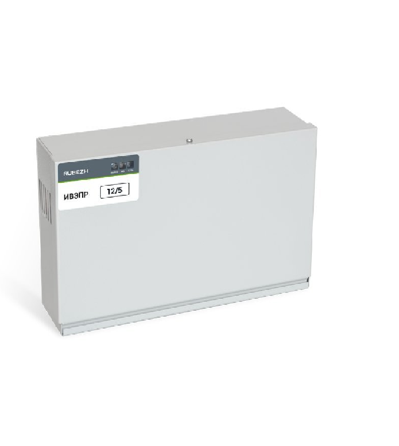 Резервированный источник питания; U-вх.140…265 В, P-потр.87 Вт, U-вых.12 В, I-вых.5 А(до 5.5 А кратковрем.); под два АКБ 12 В 7 А·ч; защита от КЗ и разряд., световая индикация, вых."СК"(АВАРИЯ); IP20, tраб.-10…+50°С, 324х86х184 мм. Подключение резервного блока БР12. Металлический корпус.